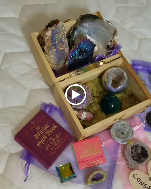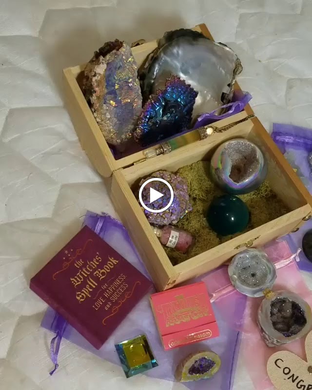 I am absolutely stoked and honored to have won, there are enough crystals to share with my entire coven! It was such a great gift for us all! :) The prizes have already been divided up between us, but here is the whole lot together for a group picture of my own before they were sent to their respective homes.